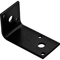 Used to reinforce a 90 degree angle through application on the inside. Clearance for 5/16" bolt or 2 nails per side. Extra length on one leg gives extra reach to provide greater stability. 45 degree hole pattern for nails provides easy installation option . Black powder coat finish for improved weather resistance.