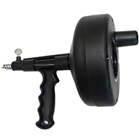 The ProSource DA00003P-25 Drum Auger is a professional-grade manual drain cleaning tool designed to clear stubborn clogs in sinks, showers, and tub drains. It features a 1/4-inch diameter, 25-foot high-carbon steel cable housed in a durable, high-impact polypropylene drum for long-lasting performance. The ergonomic pistol-grip handle and integrated thumbscrew cable lock provide precise control and ease of use during operation. This compact and lightweight auger is an essential addition to any plumbing maintenance toolkit, offering a reliable solution for residential and commercial drain cleaning tasks.